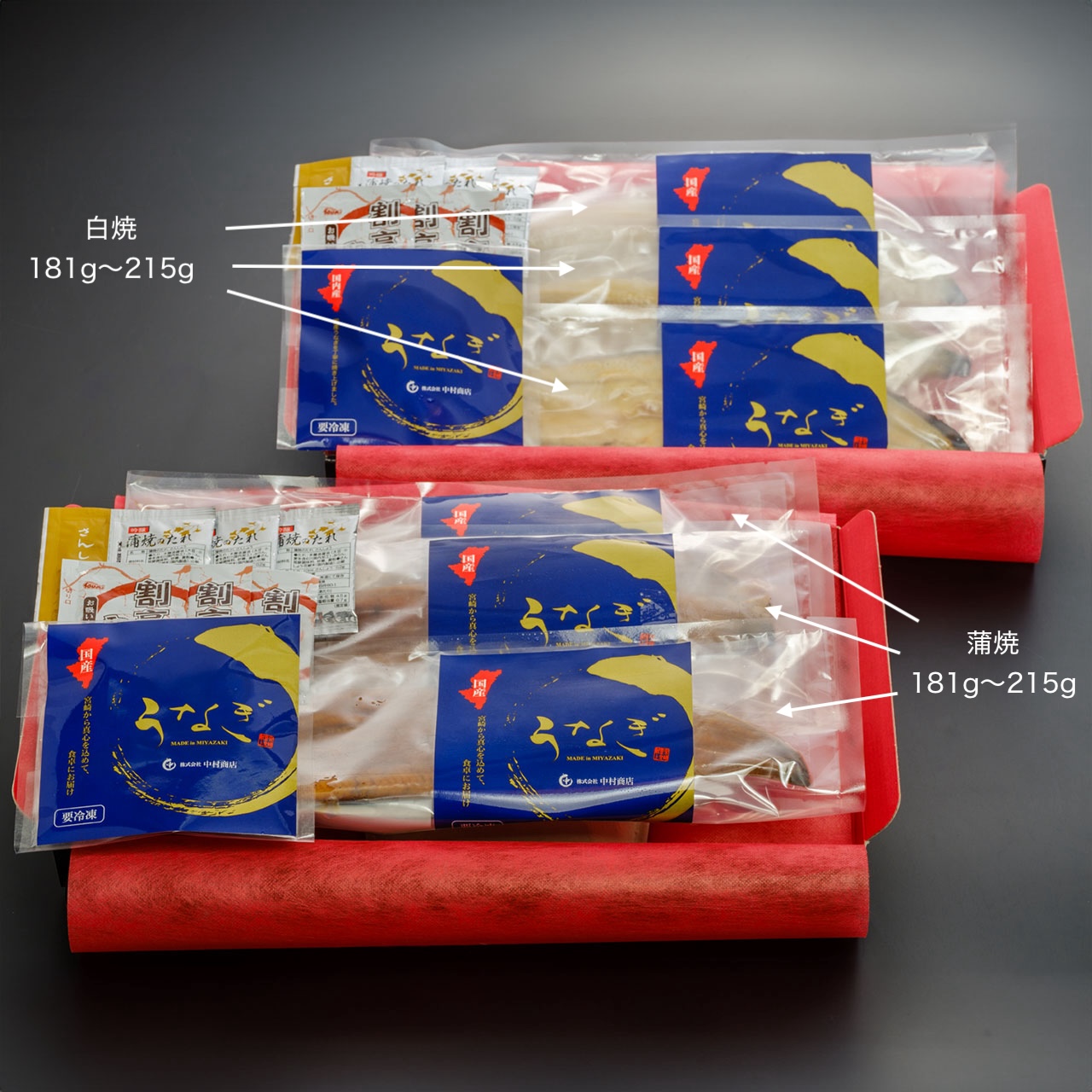 うなぎ(宮崎産)、本醸造醤油(大豆、小麦を含む)、水あめ、発酵調味料、砂糖混合ぶどう糖果糖液糖、みりん、砂糖、澱粉